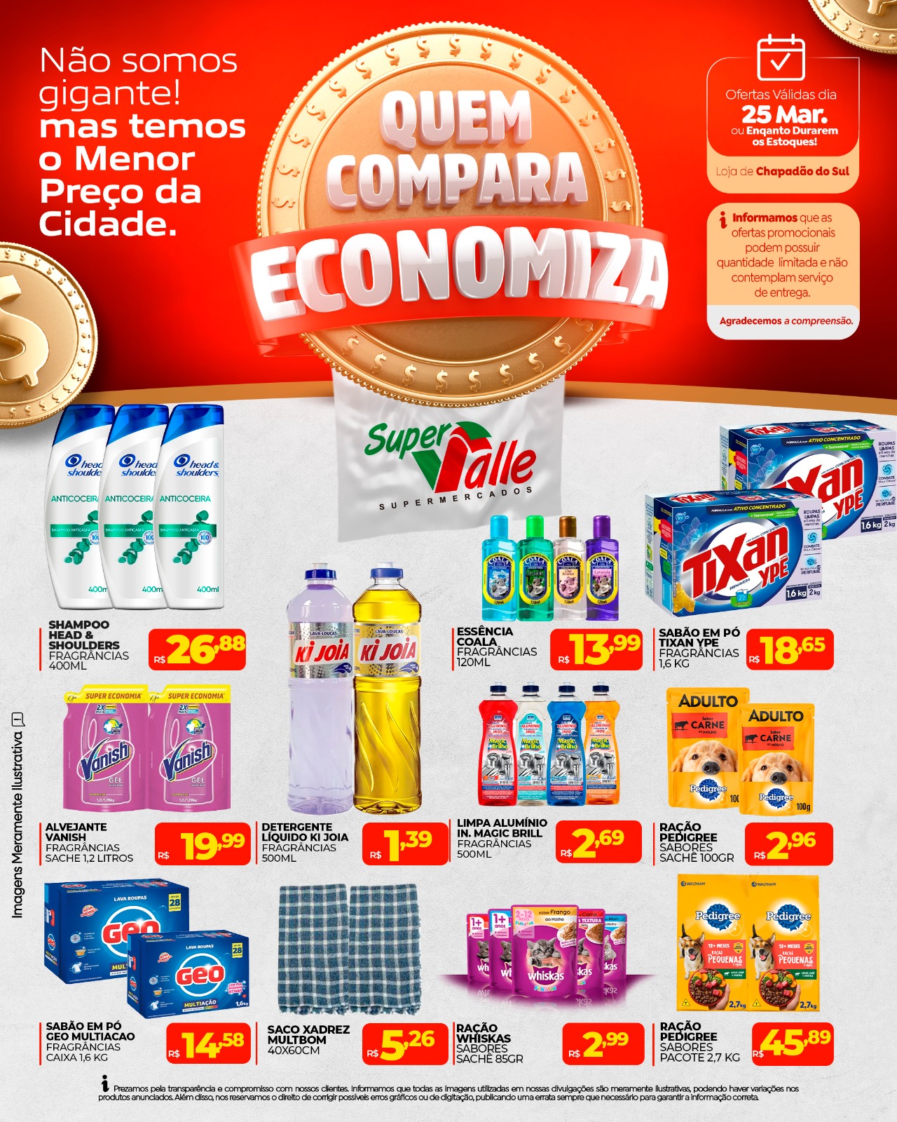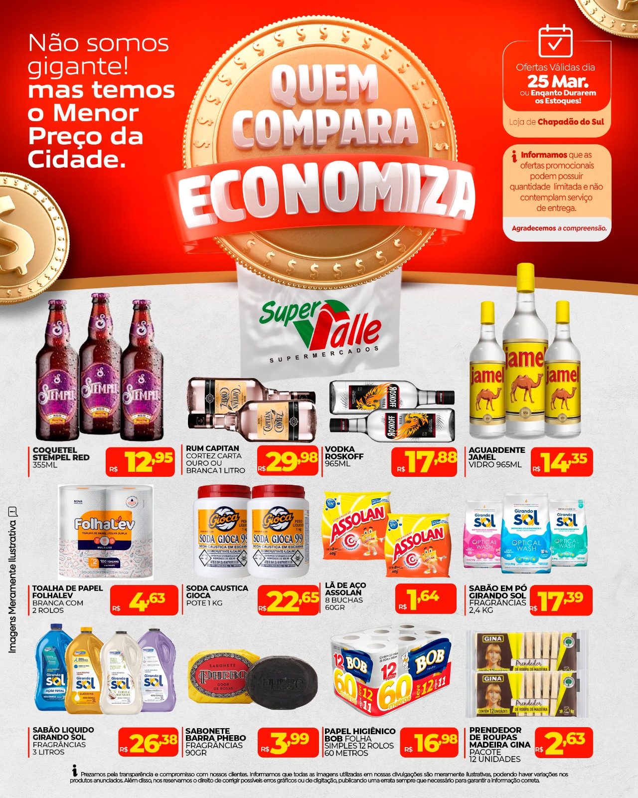 InícioChapadão do SulQuarta-feira de promoções no Super Valle - Confira Quarta-feira de promoções no Super Valle – Confira 25 de março de 2026 58 FacebookTwitterPinterestWhatsApp Adejair Ofertas válidas somente hoje, dia 25 de Março! Aqui em Chapadão do Sul quem pesquisa encontra os melhores preços pra economizar de verdade! 🛒💰 Compare, escolha e leve mais pagando menos! Artigo anteriorMorto por ex prefeito da Capital foi à casa com notificação, pedindo que Bernal deixasse imóvel leiloadoPróximo artigoNesta quarta-feira tem Rodízio de Pizza no Barzinho Oriental SEDEMA no Bairro: Esperança receberá serviços itinerantes da SEDEMA e Secretaria de Saúde 25 de março de 2026 Pintado na COP15: proposta global quer unir países para proteger espécie de peixe gigante 25 de março de 2026 Prefeitura de Cassilândia decreta situação de emergência para recuperar estradas e vias afetadas pelas chuvas 25 de março de 2026 Soja sobe na Bolsa de Chicago nesta 4ª feira, 25 de março de 2026 SEDEMA no Bairro: Esperança receberá serviços itinerantes da SEDEMA e Secretaria de Saúde Pintado na COP15: proposta global quer unir países para proteger espécie de peixe gigante Prefeitura de Cassilândia decreta situação de emergência para recuperar estradas e vias afetadas pelas chuvas Soja sobe na Bolsa de Chicago nesta 4ª feira, Algodão: Alta na paridade de exportação sustenta preços internos Mulher é presa em flagrante após série de furtos em supermercados de Cassilândia Chapadão do Sul recebeu lenda do atletismo brasileiro Zequinha Barbosa em tarde de inspiração e aprendizado Nesta quarta-feira tem Rodízio de Pizza no Barzinho Oriental Morto por ex prefeito da Capital foi à casa com notificação, pedindo que Bernal deixasse imóvel leiloado Fertilizante-chave tem exportação suspensa Veja as propopsituras apresentadas pelos vereadores de Paraíso Jovem de 21 anos sofre tentativa de homicídio por dívida em Cassilandia