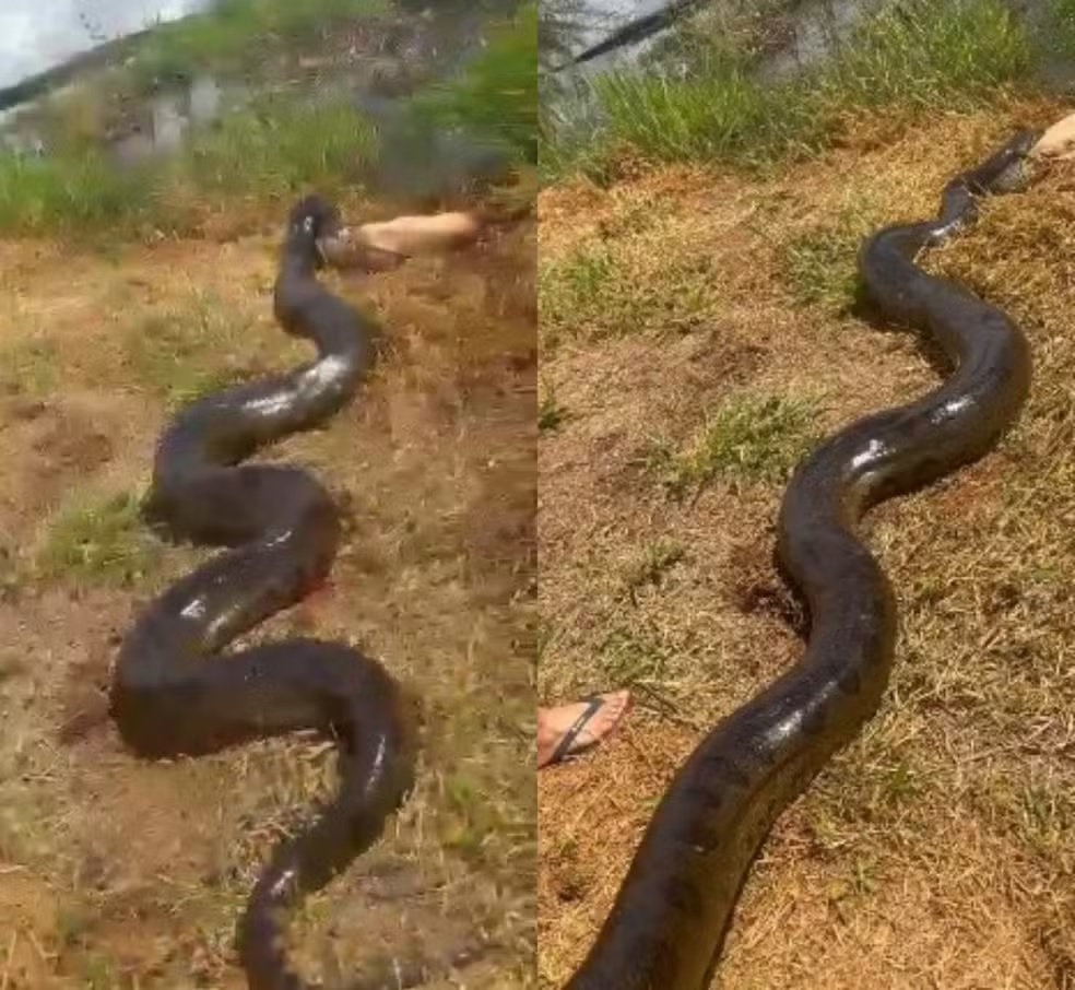 “O registro é raro porque meu irmão não tem câmeras no local. Nesse dia, meus sobrinhos estavam lá e conseguiram filmar o momento em que a sucuri pegou um dos cachorros”, contou Maria Luna.