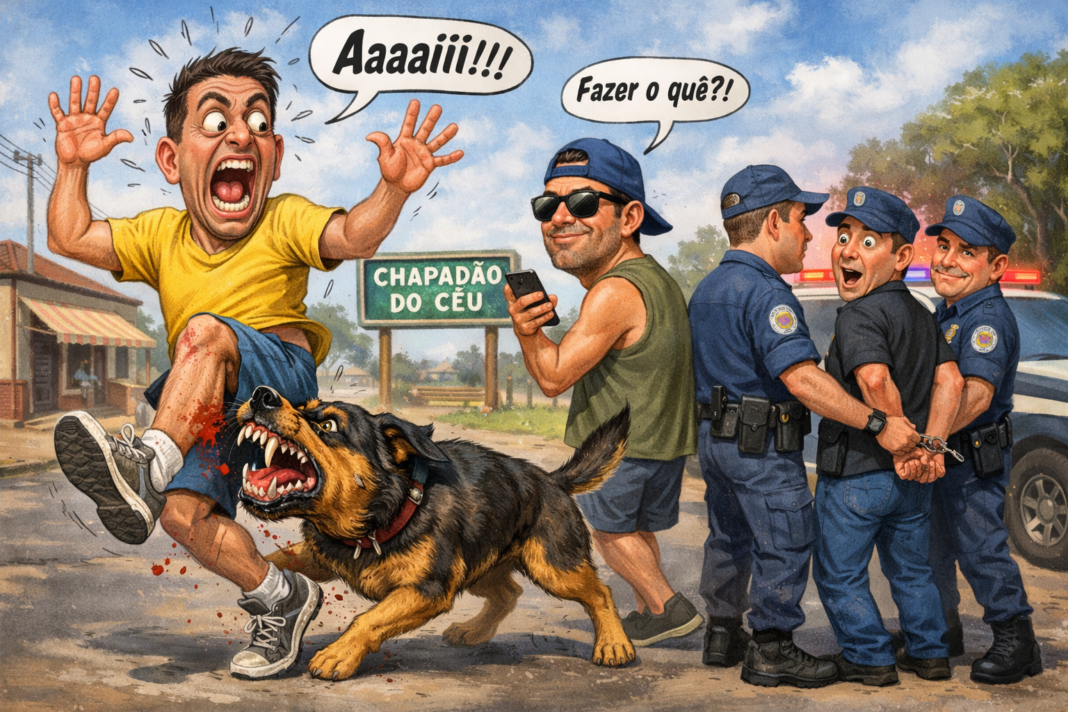 Um homem procurou a delegacia após ser atacado por um cachorro de grande porte enquanto caminhava por via pública, em Chapadão do Céu. Segundo relato da vítima, o animal provocou lesões na região da panturrilha.