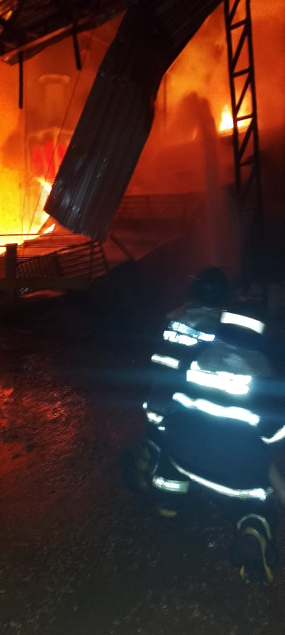 Mesmo após o desabamento, os bombeiros continuaram atuando para controlar as chamas e evitar que o fogo se alastrasse ainda mais, atingindo outros armazéns da empresa.
