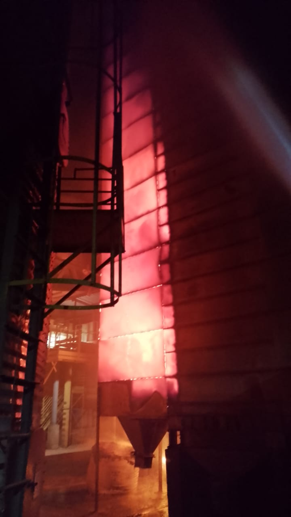 Parte dos armazéns de grãos foi destruída pelo incêndio. Até o momento, não há informações sobre feridos. As causas do incêndio ainda serão investigadas.
