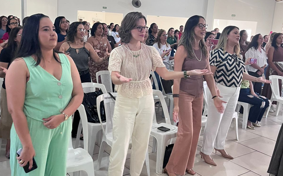 Encerrando a programação, a médica psiquiatra Dra. Bárbara Albino Queiroz conduziu uma palestra voltada ao cuidado com os profissionais da educação, enfatizando a importância da saúde mental de quem atua diretamente no ensino.