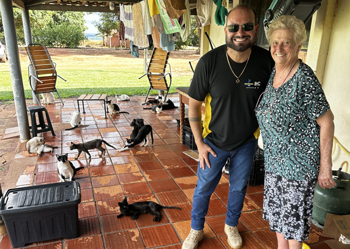 A equipe formada pelo jornalista Fernando de Brito e pelo cinegrafista Gian do Couto, da JVC Produtora, se surpreendeu logo na chegada à propriedade, localizada no Lote 16. Em meio à tranquilidade do ambiente rural, dezenas de gatos circulavam de forma organizada e tranquila, demonstrando um comportamento dócil e bem cuidado.