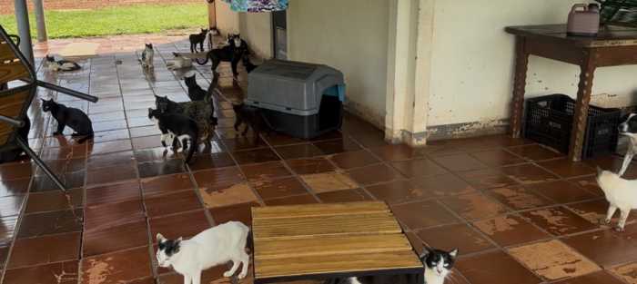 Outro aspecto que chama atenção é a disciplina dos animais. Nenhum dos gatos entra na residência, permanecendo sempre na área externa, mantendo o ambiente limpo e organizado. A convivência harmoniosa inclui ainda a única cadela da propriedade, chamada carinhosamente de Menina, que interage com os gatos de forma tranquila. Entre eles, há respeito e até momentos de brincadeira, evidenciando um convívio raro e admirável.