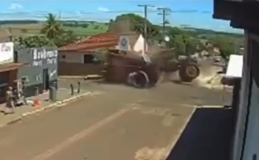 Um acidente envolvendo duas máquinas agrícolas foi registrado por câmeras de segurança na última quinta-feira (16), em Buriti Alegre, localizada no sul do estado de Goiás.
