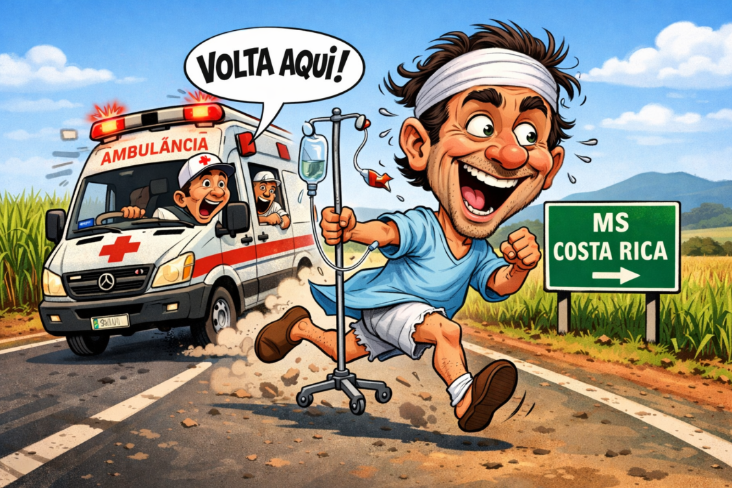 Diante do quadro clínico, o médico plantonista avaliou a necessidade de transferência imediata para uma unidade de maior complexidade na cidade de Costa Rica, onde seriam realizados exames de imagem para verificar a possibilidade de perfuração de órgãos internos.