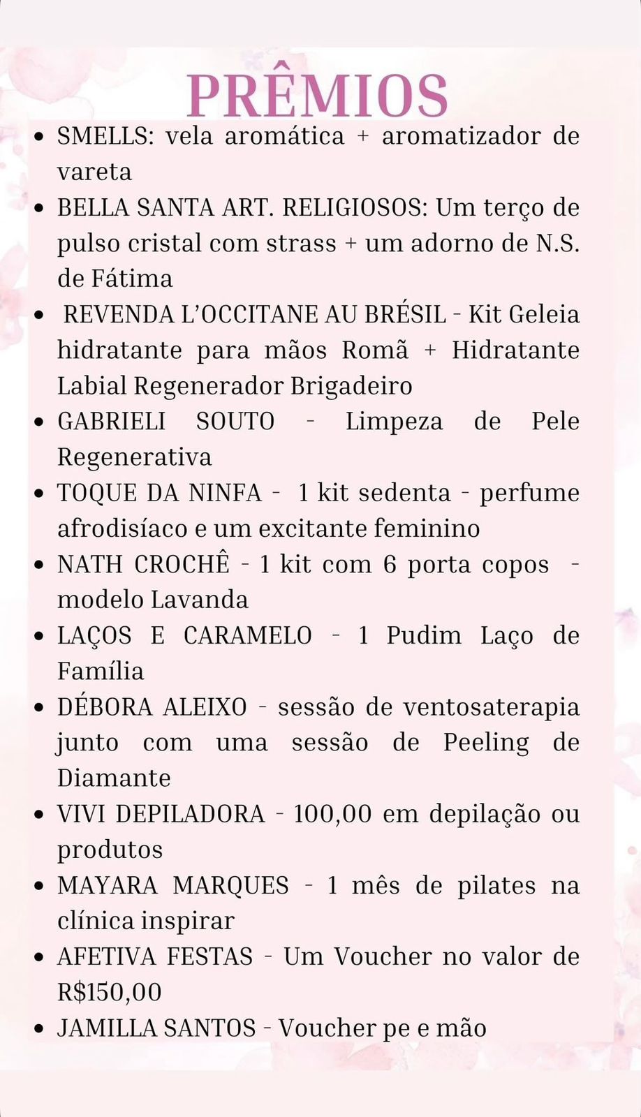 Com o objetivo de fortalecer o comércio local, ganhar visibilidade e encantar o público, elas prepararam uma campanha recheada de oportunidades. Ao todo, serão 30 prêmios incríveis, incluindo cestas recheadas, serviços de beleza, consultorias exclusivas e acessórios — tudo produzido e oferecido pelas próprias participantes!