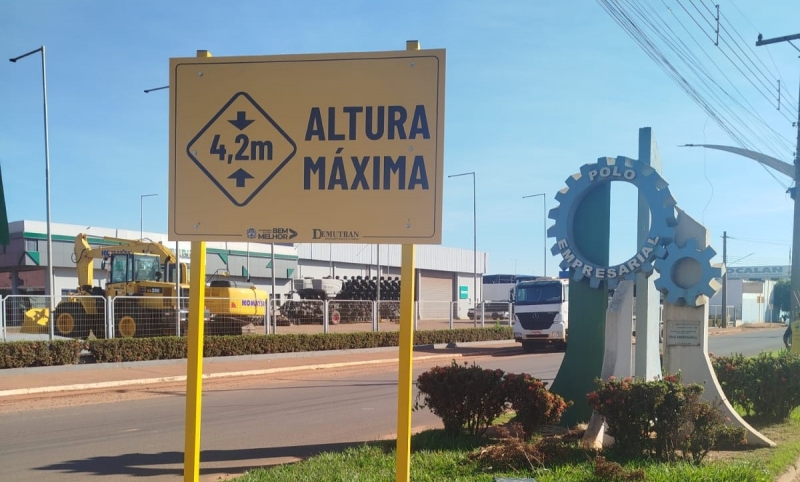 Como parte das ações preventivas, a Prefeitura já iniciou a instalação de placas de sinalização vertical informando a altura máxima permitida. Os primeiros dispositivos estão sendo implantados no Polo Empresarial, local de intenso fluxo de caminhões e veículos de grande porte.