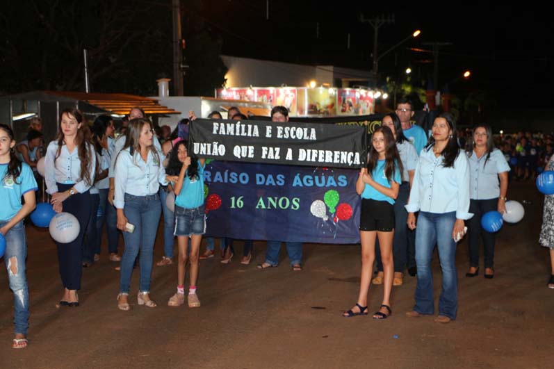 Teve prosseguimento na noite deste sábado 28, as comemorações do aniversario de Paraíso das Águas, com a realização do desfile escolar e o encontro de Bandas e show com a Banda Musical Lilás.