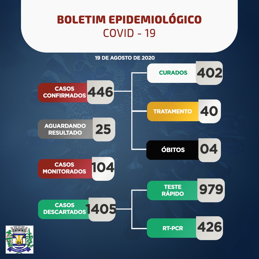 Nesta quarta-feira, 19, o município tem 446 casos confirmados da doença, desses 402 já estão curados, 40 encontram-se em tratamento e 04 vieram a óbito. Outras 25 pessoas aguardam resultados de exames do Lacen/MS – Laboratório Central Mato Grosso do Sul, e 1405 casos foram descartados.