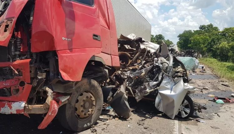 Com a batida, a caminhonete ficou totalmente destruída. Um caminhão tombou e ficou atravessado na pista. Pedaços dos veículos ficaram espalhados pela rodovia.