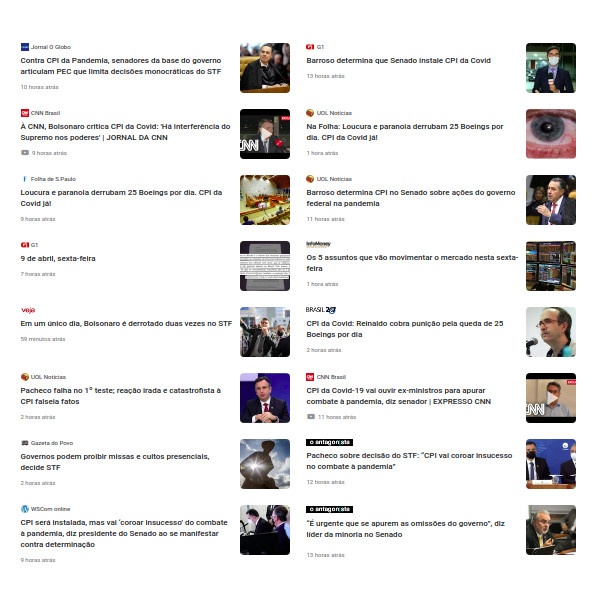 Usando o mesmo modus operandi a imprensa brasileira começou a dar publicidade a CPI da Pandemia como se ela fosse o único foco no país, porém esta mesma CPI dará fundamentação para tudo que a imprensa vem divulgando durante a pandemia, colocando na conta do presidente todas as mortes por covid no Brasil. O próprio STF que proibiu Bolsonaro de agir contra o COVID, agora determina criação de CPI para o investigar por omissão.