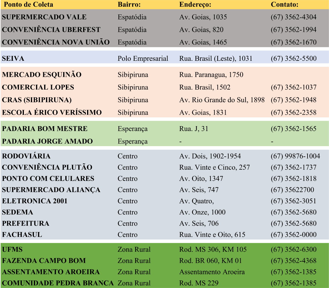 Atualmente, o município já conta com um ponto de coleta de lâmpadas na loja de materiais de construção Construmaia, que já recebeu seu ponto de coleta, em parceria com a Reciclus clique aqui e saiba mais. Logo outros pontos de coleta serão implantados, possibilitando à população local, o correto descarte de lâmpadas velhas ou queimadas.