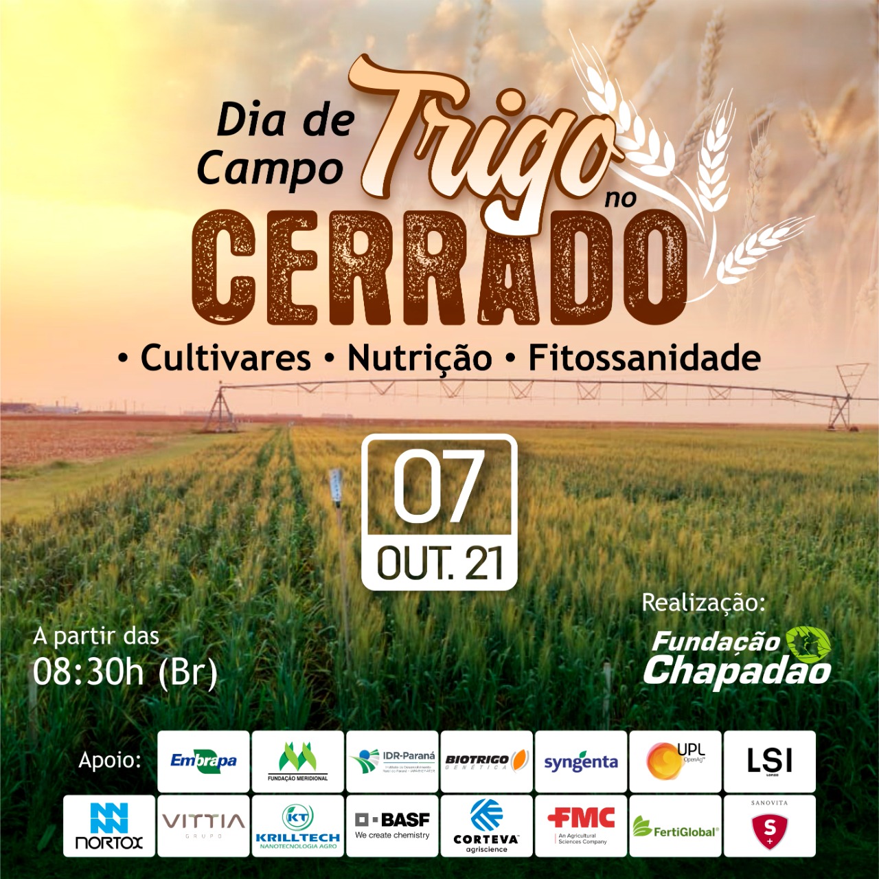 A Fundação Chapadão estará realizando no próximo dia 07 de outubro, Dia de Campo Trigo no Cerrado.