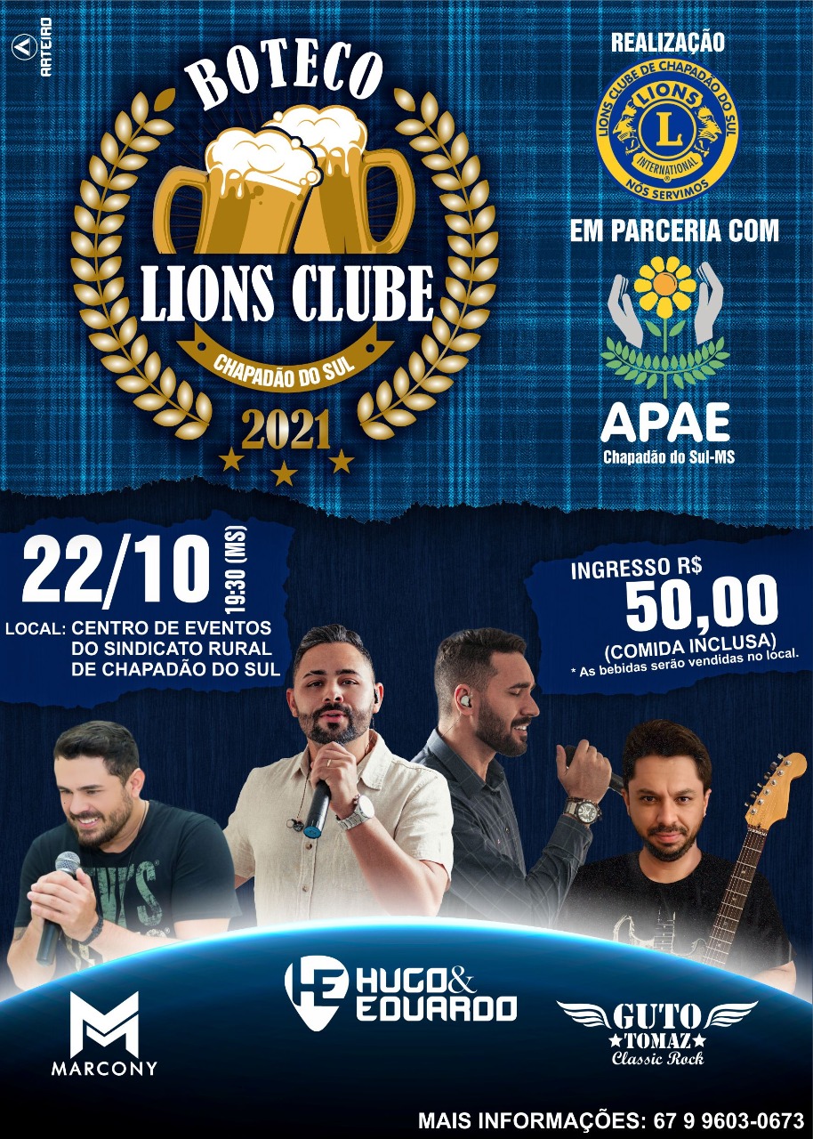 Acontece nesta sexta-feira 22, a 1ª Roda de Boteco do Lions Clube de Chapadão do Sul.