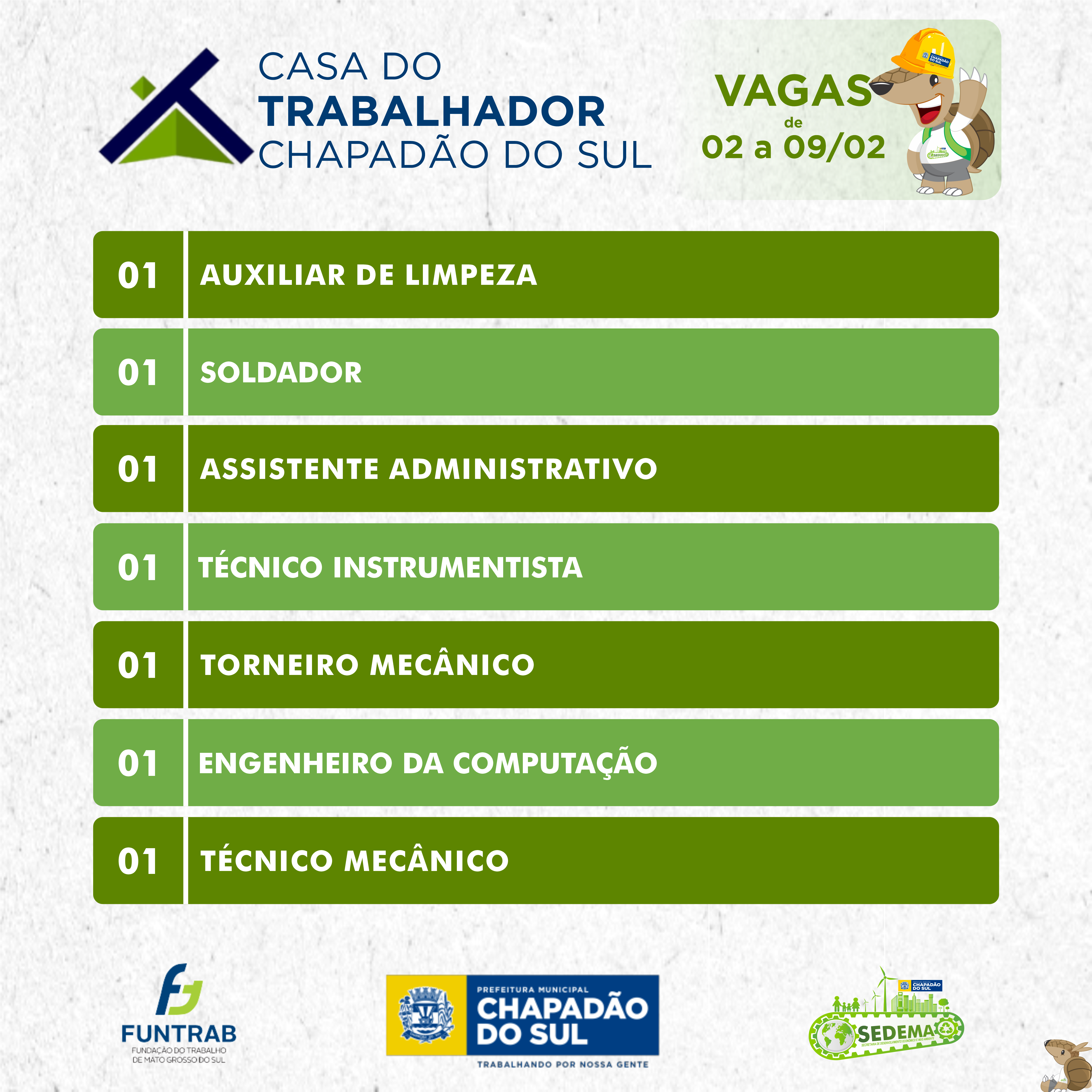 Para quem está precisando voltar ao mercado de trabalho ou busca um mudança de emprego, a Prefeitura de Chapadão do Sul e a SEDEMA, por meio da Casa do Trabalhador de Chapadão do Sul, disponibilizam vagas de emprego no município.