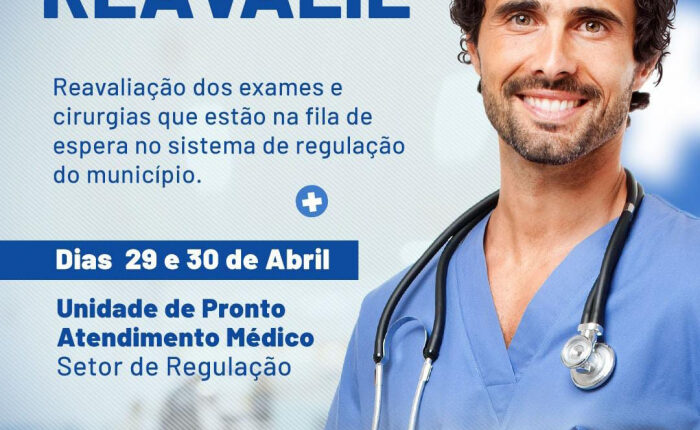 O atendimento acontece nos dias 29 e 30 de abril, na unidade de Pronto Atendimento Médico – Setor de Regulação.