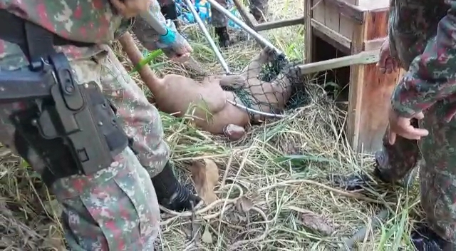 O motorista de um ônibus passou pelo local, viu a onça e acionou a polícia. Foram, então, deslocados policiais da PMA (Polícia Militar Ambiental) de Aparecida do Taboado e de Cassilândia, que encontraram a fêmea adulta muito ferida e que não conseguia se deslocar.