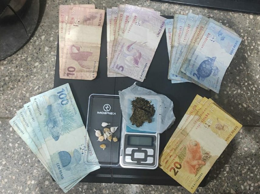 Durante busca na casa do autor, os policiais encontraram uma balança de precisão, uma porção de maconha e o valor de R$ 651 reais em diversas cédulas e valores.