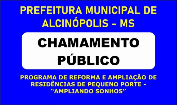 Alcir Gonçalves Dias, Secretário Municipal de Ação Social, no uso de suas atribuições legais, torna pública, para conhecimento dos interessados, a abertura de inscrições para o cadastro de candidatos ao PROGRAMA DE REFORMA E AMPLIAÇÃO DE RESIDÊNCIAS DE PEQUENO PORTE – “AMPLIANDO SONHOS” instituído pela LEI Nº 460/2019, 16 DE OUTUBRO DE 2019 e suas alterações, visando a reforma e/ou ampliação de 15 unidades habitacionais.