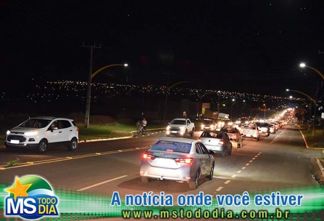 Por volta das 18 horas, o hino nacional abriu a carreata que contou com buzinaço e queima de fogos, reunindo mais de 1.000 pessoas surprendendo a organização. O comboio seguiu pela Avenida José Ferreira da Costa e subiu até o final do prolongamento, onde deu a volta na rotatória e desceu a avenida novamente, passando pelo centro, e indo sentido Avenida Vereador Kendi Nakai. Na Kendi Nakai, os veículos foram até à saída para Chapadão do Sul, onde novamente deram a volta e retornaram ao parque ecológico.