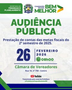 Nesta quinta-feira (26) tem audiência pública para prestação de contas da Prefeitura de Chapadão do Sul