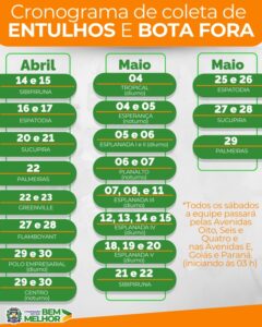 Prefeitura divulga calendário de coletas de entulhos para final de abril e maio