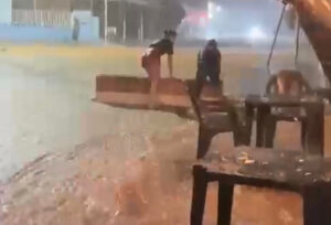 Forte chuva provoca alagamento de avenida e água invade casas e comércios no Centro de Paraíso das Águas