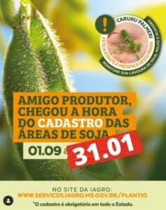 PRAZO ENCERRA HOJE! Cadastre suas áreas de plantio de soja até 31 de janeiro em MS!