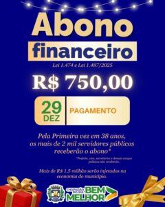 Atualização: Prefeitura de Chapadão do Sul confirma pagamento dia 29 de abono financeiro inédito aos servidores municipais no valor de R$ 750,00