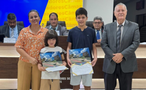Vereador Lucas entrega Moção de Congratulação e Aplausos a jovens destaques do xadrez escolar