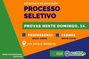 Acontece neste domingo (14) as provas do processo seletivo da Educação de Chapadão do Sul