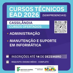 IFMS abre inscrições para cursos técnicos semipresenciais em Cassilândia para 2026