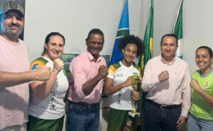 Prefeito Ivan Xixi recebe campeã sul-americana de karatê Amanda Nogueira de Camargo