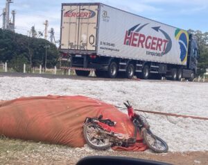 Carreta carregada de pluma de algodão tomba e atinge mulher em Chapadão do Sul
