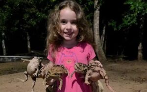 Melhor amiga dos sapos: Menina brinca com animais e impressiona nas redes sociais