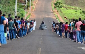Fieis participam de missa e procissão no Dia de Finados em Paraíso das Águas