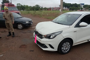 Bombeiros encaminham idosa ao hospital após colisão de veículos em Chapadão do Sul