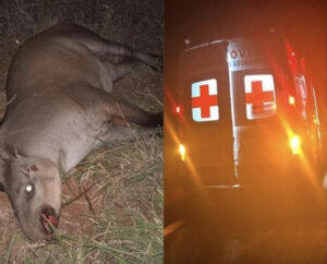 Ambulância de Paraíso das Águas colide com anta na MS-316 durante transferência de paciente a Costa Rica