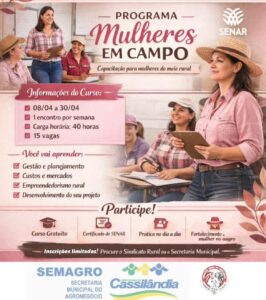 Cassilândia abre inscrições para programa de capacitação voltado a mulheres do meio rural