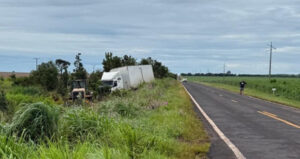 Caminhão baú sai da pista na BR-060 em Paraíso das Águas