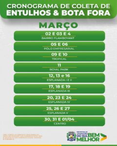 Novo cronograma da coleta de entulhos e bota fora