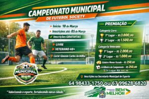Campeonato municipal de futebol Society terá inscrições gratuitas e premiação em dinheiro