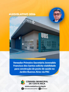 Vereador Juvenal da Farmácia solicita inclusão de posto de saúde no PAC para o bairro Jardim Buenos Aires