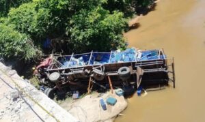 Caminhão que transportava colheitadeira cai de serra e deixa dois mortos