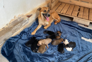 Cadela com 10 filhotes é resgata pelos bombeiros